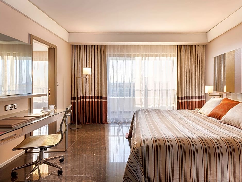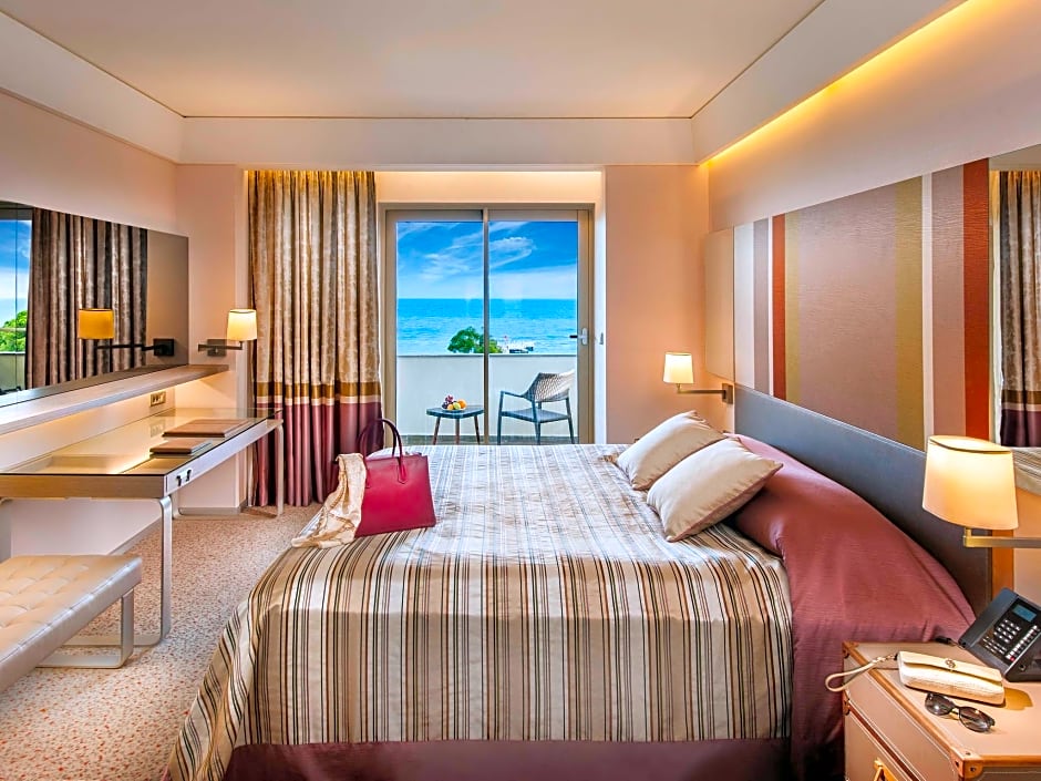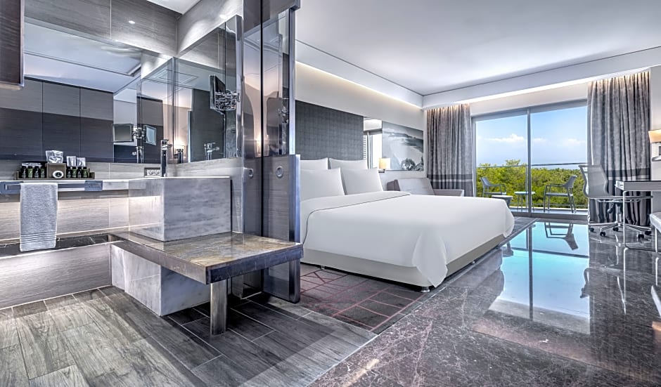 Deluxe Room, Sea View is 398 square feet and includes either 2 single beds 80-130 width or a queen-size bed 150-154 width plus extra beds on demand and is Wheelchair-accessible with a Disability-friendly bathroom.